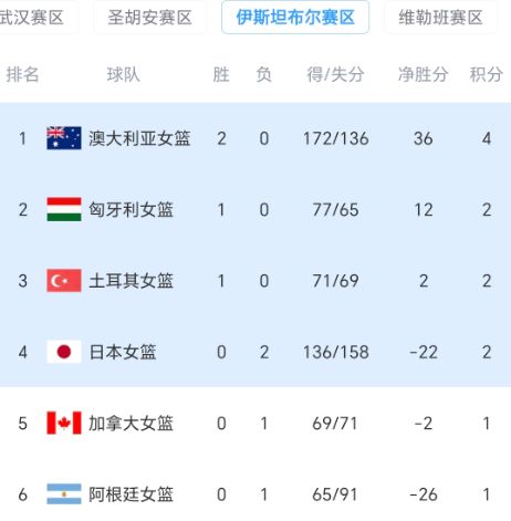 女籃世預賽悲喜夜:中國隊慘敗 日本遭澳大利亞逆轉 最新排名出爐