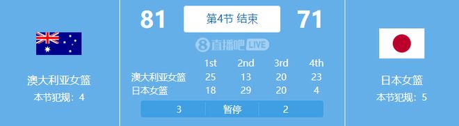 數(shù)據(jù)統(tǒng)計,澳大利亞女籃這邊四人得分上雙,最高是拿到17分的惠特科姆,日本女籃是三人得分上雙,最高是拿到17分的田中心。