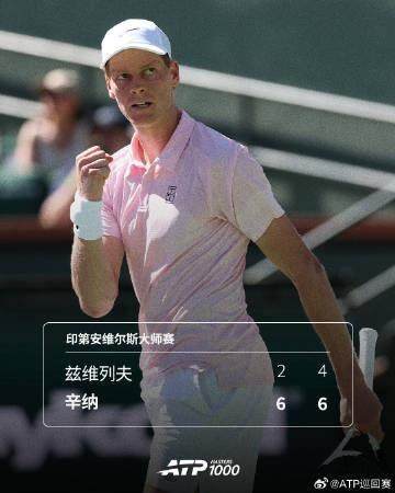 ATP1000印第安維爾斯大師賽半決賽,辛納2比0橫掃茲維列夫晉級。2號種子辛納6比2 6比4擊敗4號種子茲維列夫,取得對后者的六連勝(總戰績7比4),首次在本站闖入決賽,實現在六個硬地大師賽全部闖入過決賽的壯舉!這也是他第10個大師賽決賽、第34個巡回賽決賽,接下來將靜候阿爾卡拉斯和梅德韋杰夫的勝者。